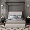 - Striking Canopy Design – Sleek iron frame with a modern canopy that adds sophistication and makes a bold bedroom statement