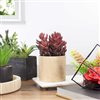 Succulents have become a growing trend as they are easy to care for and require little attention. This artificial succulent is even better as it looks real but requires no maintenance. The purple succulent is nestled inside of brown pot with a faux wood like finish. Grab yourself one or two of these succulents today to add some character to your home or office. Features: Artificial purple succulent in a pot. Nestled inside a faux wood grain plastic pot. The plant is set in a faux dirt and stone for stability. Recommended for use in Doors only—if using outdoor keep in a covered area. Overall dimensions: 7-in high x 4.5-in diameter. Pot dimensions: 3.5-in high x 3.75-in diameter. Material(s): plastic