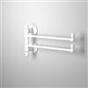 Designed with multi-use and modernity in mind, this space saving double arm towel bar is an ideal addition for your bathroom and/or kitchen. Each arm swivels independently and snuggles close to the wall when not in use, excellent to keep your bathroom or your kitchen organized!