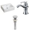 It features a rectangle shape. This vessel set is designed to be installed as an above-counter vessel set. It is constructed with ceramic and it comes with an enamel glaze finish in white colour. It is designed for a 1 hole faucet.