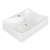 This rectangular vessel set is designed to be installed as a wall mount vessel set. Our beautiful white ceramic vessel comes in enamel glaze finish and is designed for a single hole faucet.