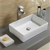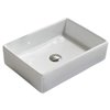 This rectangular sink features a ceramic construction and is designed to be installed as a above counter vessel. This vessel comes with a white enamel glaze finish. This product is ideal for a 3h8-in. faucet.