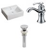 It features a rectangle shape. It is designed to be installed as a wall mount vessel set. It is constructed with ceramic and it comes with an enamel glaze finish in white colour for a 1 hole faucet.