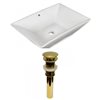 This vessel set is designed to be installed as a above counter vessel set. It is constructed with ceramic. It features a rectangle shape. This vessel set comes with a enamel glaze finish in white color. It is designed for a deck mount faucet.This product includes: 1x vessel in white color (1734), 1x bathroom sink drain in gold color (20328).