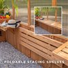 - 83 square feet of interior space, including 25-ft of lower staging shelves, plus 7 1/2-ft of upper shelves, and six plant hangers