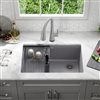 - Unlike natural granite, advanced composite material is denser with a smooth non-porous surface, making this sink stain-resistant and easier to clean
