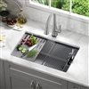 - Kit includes a workstation sink, a cutting board, a roll-up dish drying rack with a removable utensil holder, a silicone drying mat, and drain assembly with a strainer