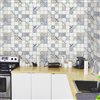 Dundee Deco Falkirk Retro 3D III Blue Beige Faux Tile 3.1 ft X 1.6 ft PVC 3D Wall Panel - 4.9-sq. ft. each