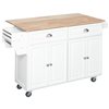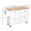 Let HOMCOM kitchen island on wheels help you with hosting parties and food prep. It has varied storage options including a rubber wood countertop, two large drawers, two cabinets, a spice rack, a knife rack and a towel rack for daily electric kitchen appliances. When you need more space, simply expand the drop-leaf countertop and fold it right back up when you're done to save kitchen space.