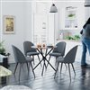 Upgrade your dining space with this sleek 3-piece set. Featuring a rich wood-look round table and two dark grey upholstered chairs, this set delivers both comfort and style in a compact footprint that is perfect for apartments, breakfast nooks, or small kitchens.