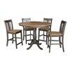 International Concepts 36-in Round Extension Dining Table w/ 4 San Remo Counter Height Stools - Hickory/Washed Coal