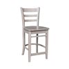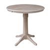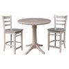 International Concepts 36-in Round Extension Wood Dining Table w/ 2 Emily Counter Height Stools - Washed Grey Taupe