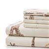 Marina Decoration 4-Piece Bamboo/Polyester Twin Bed Sheet Set - Taupe/Brown Paris Eiffel Tower Pattern