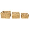 These storage baskets are the perfect blend of style and functionality for your home organization needs. Crafted with natural fibres these baskets boast a sophisticated diamond weave pattern adding an elegant touch to any space. Each basket provides ample storage space for all your essentials. Product Features: Set of 3 rectangular woven storage baskets. Solid beige rectangular baskets with a diamond weave pattern. Each basket comes with 2 built-in carrying handles. Woven with natural fibres. Ideal for storing toys, clothing, blankets and more. Recommended for indoor use only. Dimensions: Small: 8-in H x 13.75-in W x 11.5-in D; Medium: 10-in H x 15.5-in W x 13.75-in D; Large: 11.75-in H x 17.75-in W x 15.5-in D. Material(s): water hyacinth