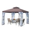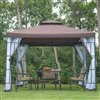 Outsunny Coffee Metal Square Semi-Permanent Gazebo with Screen and Polyester Roof 10 x 10-ft