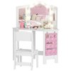 Qaba White 2 in 1 Kids Vanity Set with Mirror Stool Lights