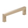 The texture of this smooth-faced transitional pull is enhanced by grooves on the top and bottom, adding a subtle touch of sophistication to any furniture. This model from Como collection measures 128 mm and features a sublime champagne-bronze finish.