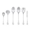 - Set includes: 8 dinner forks, 8 dinner spoons, 8 salad forks, 8 teaspoons, 8 dinner knives, 1 serving spoon, 1 slotted serving spoon, 1 gravy ladle, 1 serving fork, 1 butter knife, 1 sugar spoon