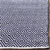 The Boston collection of 100% pure cotton, flat weave area rugs is the perfect choice for casual interiors from coastal to city lofts. This navy rug measures 2.3 x 9 feet.