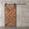 Sliding doors are a great, easy way to freshen up any space. With reclaimed barn wood on one side, and a seamless, dark oak panel on the other, our 42-inch reclaimed wood Moncton door gives you 2 entirely different personalities to play with when decorating. Its solid, heavy core is great for sound-dampening between rooms, while metal edges add a subtle flare with durability as an added benefit.
