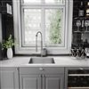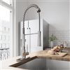 The VIGO Laurelton pull-down kitchen faucet features a dual action, pull-down spray head and a 360° swivel spout that is extendable up to 22 inches. These features, as well as the faucet's sleek lines and tall arch, bring modernity to any kitchen. The solid brass construction and corrosion resistant finish ensure durability.