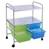 Our 4 drawer rolling storage cart includes 4 big drawers and 2 shelves which provide enough storage space. This 4 drawers rolling cart is durable and serve you for a long time. Four universal wheels will help you move it easily.