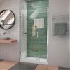 The DreamLine Unidoor-LS is a frameless swing shower door designed with a brushed nickel hardware kit to add a timeless style to any bathroom space. This model measures 38 inches wide and features frameless glass design, a patented L-Bar on inline panel for an unobstructed, clean look. The DreamLine exclusive ClearMax water and stain-resistant glass coating adds superior protection from stains and is nearly maintenance-free.