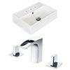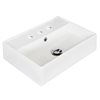 It features a rectangle shape. This vessel set is designed to be installed as an above-counter vessel set. It is constructed with ceramic and it comes with an enamel glaze finish in white colour. It is designed for a 3h8-in. faucet.