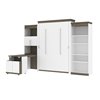 Bestar Orion Queen Murphy Bed Integrated Storage Walnut Grey & White