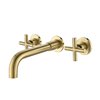 This wall-mounted bathroom sink faucet combines timeless style with everyday practicality. Designed with dual cross handles, it offers smooth and accurate control over both water temperature and flow for a comfortable daily experience. The integrated aerator delivers a gentle, well-balanced stream that minimizes splashing while helping conserve water. With its clean lines and understated silhouette, the faucet blends seamlessly into a wide range of bathroom decors and is easy to maintain. Crafted from premium materials and finished with a protective surface treatment, it is built to resist corrosion and rust for long-lasting performance.