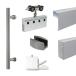- Includes track, hardware and long stainless steel handle (15-11/16-in) for one glass panel