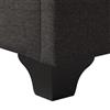 - Padded headboard and bed frame are beautifully upholstered in a soft dark grey fabric