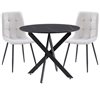 A stylish gathering place for family and friends, the Elliot trestle leg dining set is the perfect mix of modern and contemporary design. With its smooth marbled finish tabletop and rich black trestle iron legs, it's as durable as it is stylish. Completing the look are two cushioned velvet upholstered chairs with flared metal legs that will keep your guests in comfort for hours.