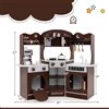 Costway Play Kitchen Playset w/ Coffee Machine + Microwave Oven and Washing Machine - Brown