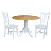 International Concepts 3-Pc 42-in Dual Drop Leaf Wood Dining Table Set w/ 2 Splat Back Dining Chairs - White/Natural