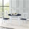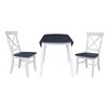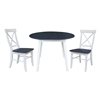 International Concepts 3-Pc 42-in Solid Wood Round Dual Drop Leaf Dining Table Set w/ 2 Chairs - White/Heather Grey