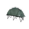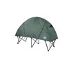 The Compact Tent Cot (CTC) standard elevates the tent cot concept to the next level of off-the-ground camping gear. This unique 3-in-1 item combines two separate, standard camping items (a tent and a cot) into one versatile, compact package. The tent top and cot join to create a comfortable off-the-ground sleep shelter and spreader bars located at each end of the tent top keep the top fully expanded for maximum interior space. When detached from the cot base, the tent top becomes a compact, lightweight one-person tent on the ground. The remaining cot base can be used independently as a typical sleeping cot. Extremely compact, the CTC standard comes complete with a Kamp-Rite rain fly and roller wheeled carry bag for convenient storage.