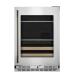 This 24-in freestanding beverage center with full-extension wood-front racks stores 14 wine bottles below with room for drinks and food on the full-width shelves above. Two temperature-controlled zones adjust for what you're storing, and a Temperature Monitoring System with sensor alert adds peace of mind.