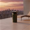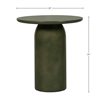 A refined pedestal table with clean geometry and a cylindrical base, offering visual strength with a smooth green-toned surface. Its durable concrete composition complements a variety of modern design settings.