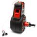 - Fold-away handle locks the retrieval arm in place to prevent breaking or inadvertent unreeling