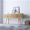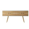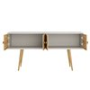 The mid-century modern at its very best, the Theodore off-white sideboard adds a whole new element of bringing the chic back to entertaining. Beautifully crafted from natural wood, from its splayed legs to its artful height and clean finish, subtle sophistication is working for this piece easily making it a focal point for any space. A set of double cabinet doors on each side reveals ample storage space for dinnerware, linens, books, albums, and beyond. A smooth base allows for displaying picture frames, artful sculptures, vases, mail tray, and more. Hang a unique mirror or modern art above for a bold show stopping statement.