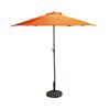 Stay shaded and cool this summer with this moderately sized market umbrella. Ideal for covering a 48-in or four people dining set. Features a sturdy powder-coated aluminum frame with steel ribs built to last a lifetime. The crank opening and push-button tilt mechanism allow for easy use. Features a hexagonal orange canopy and brown frame. Umbrella only.