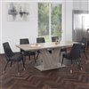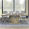 - 2" thick table top and double prism pedestal base