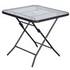 Family and friends gathered around with this outdoor bistro table from Outsunny, and It will create a beautiful backdrop to all your outdoor gatherings this season. The square table has a metal frame with a powder-coated finish and a water-grain tempered glass top for easy cleaning with a damp cloth. Features a middle umbrella hole for a parasol in place, keeping your outdoor activities cool from the sun's rays. Enjoy outdoor time with family and friends.