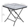 - Garden Table Info.: Overall Dimension: 29.9" L x 29.9" W x 28" H (76 x 76 x 71 cm), Foldable Dimension: 39.4" L x 29.9" W x 3.5" H (100 x 76 x 9 cm), Weight Capacity: 110lbs (50kg)