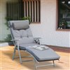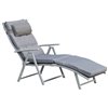 Outsunny Grey Metal Stationary Folding Reclining Chaise Lounge Chair with Grey Solid Seat