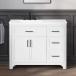 MDF 42-in vanity in white with matte black hardware and white engineered stone countertop.