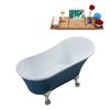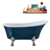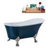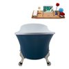 Streamline 27W x 55L Matte Light Blue Acrylic Clawfoot Bathtub with Brushed Nickel Feet and Reversible Drain with Tray