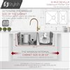 This 28 inches undermount double bowl kitchen sink features a 60/40 divider with 9 inches deep bowl which provides lots of space to hide dishes and pots, also comes with 10 mm radius corners for easy cleaning. Although this double bowl sink only measures 28 inches, it is designed with a large 15 inches bowl which provides ample space to handle large pots, it is the perfect double bowl sink for a small kitchen cabinet. This undermount kitchen sink has the drains in the middle, which allows reversible installation. The large bowl can be installed on the left or the right side to best fit your desired layout. Both basins have drain grooves for optimal drainage. Handcrafted using premium 304 stainless steel with 18 gauge and 18/10 chrome/nickel content and featuring a commercial grade brushed finish and extremely rust resistant.