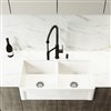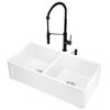 Create modern contrast in any kitchen with this contemporary all-in-one VIGO kitchen collection. This set includes the spacious 36-in Casement front Matte Stone™ double bowl farmhouse kitchen sink. Deep enough for your largest pots and pans, and perfectly arranged with a double bowl configuration, this sink is durably constructed from VIGO's signature Matte Stone™ composite. It can be installed with the flat apron or rustic casement front on display. Paired with this sink is the VIGO Livingston pull-down kitchen faucet. As stylish as it is, this faucet is also incredibly functional; it has 500,000 use tested sedal ceramic disc cartridge that resists leaks and drips. This faucet has a magnetic docking port to secure the sprayer into place when not in use, making it as high-tech as it is practical.